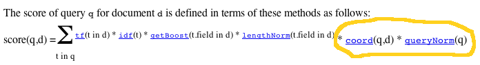 The scoring formula shown in figure 3.1 is incomplete. The correct scoring formula (highlighting the omission), directly from Lucene's